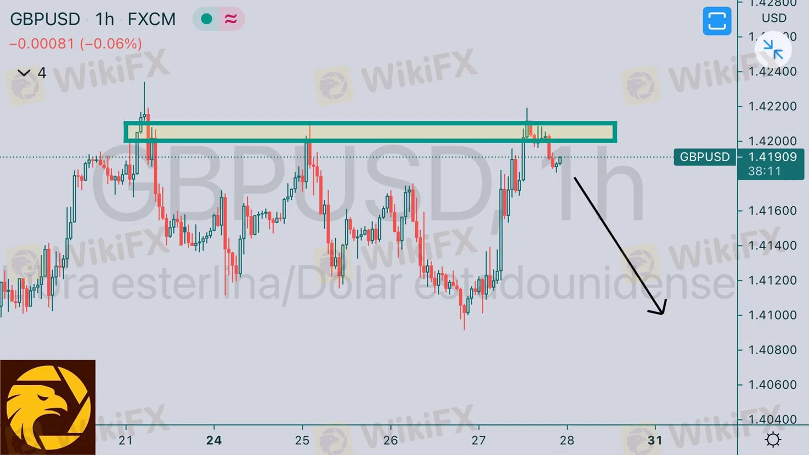 GBPUSD nuevamente testeamos la zona de rango lateral que el precio ha formado en su agotamiento alcista y podemos buscar ventas a partir del precio 1.41792