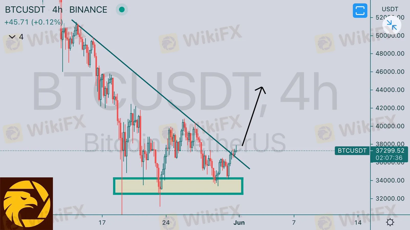 BTCUSD el Bitcoin luego de sufrir los embates de países y musk la semana pasada continúa con su caída sin embargo vemos zona de corrección en el triple piso formado rompiendo la línea de tendencia y podemos buscar compras a partir del precio 37400.00