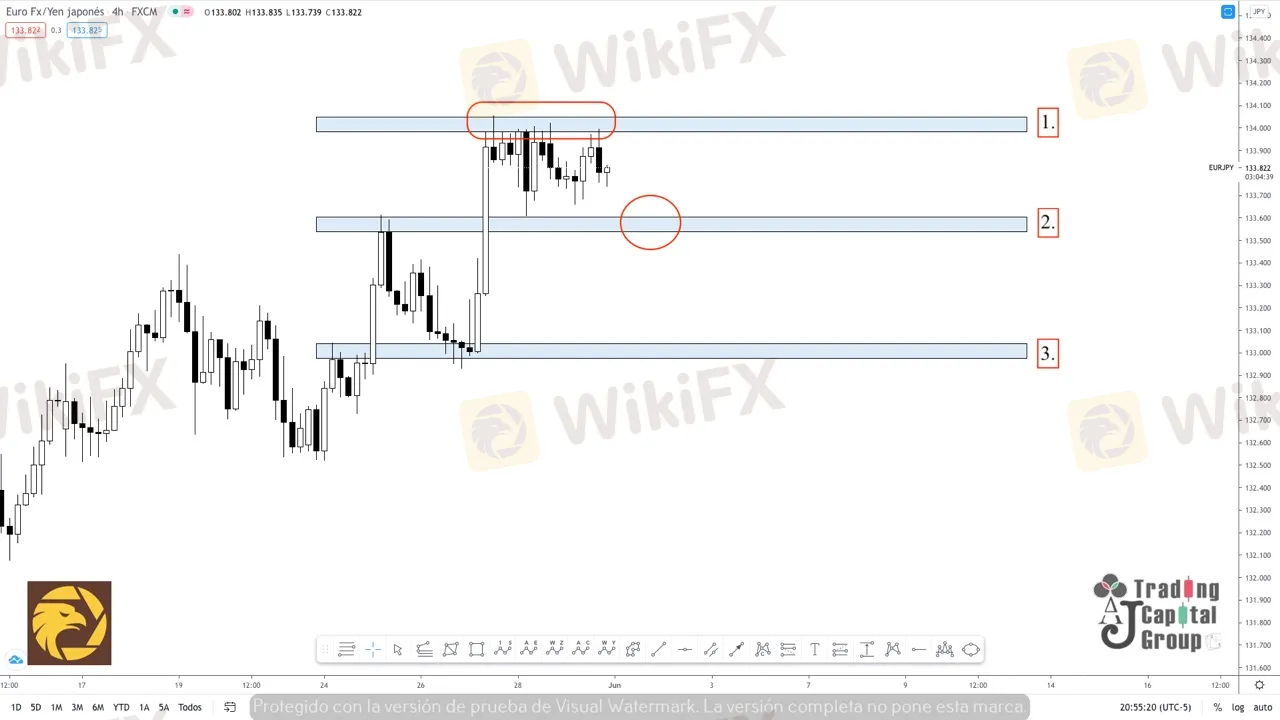 2. Al pasar de ser un nivel de oferta a convertirse en un nivel de posible demanda; esta zona podría permitir que el precio consolide un punto de venta, siempre y cuando retestee esta zona una vez la rompa con suficiente volumen de compra. Sin embargo, al ser una zona tan susceptible al cambio, habrá que esperar que haya un volumen de velas que confirme una venta adecuada.