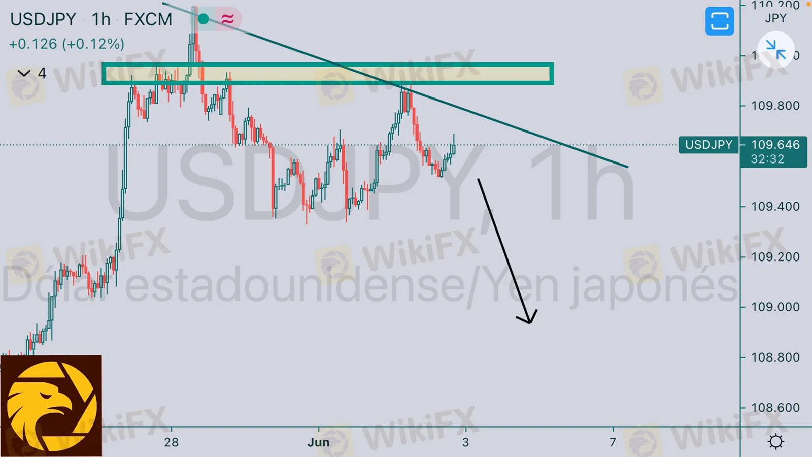 USDJPY vemos nuevamente respeto en la línea de tendencia bajista mañana hay noticias en el dólar con pronóstico a favor de modo que podemos buscar ventas a partir del precio 109.500