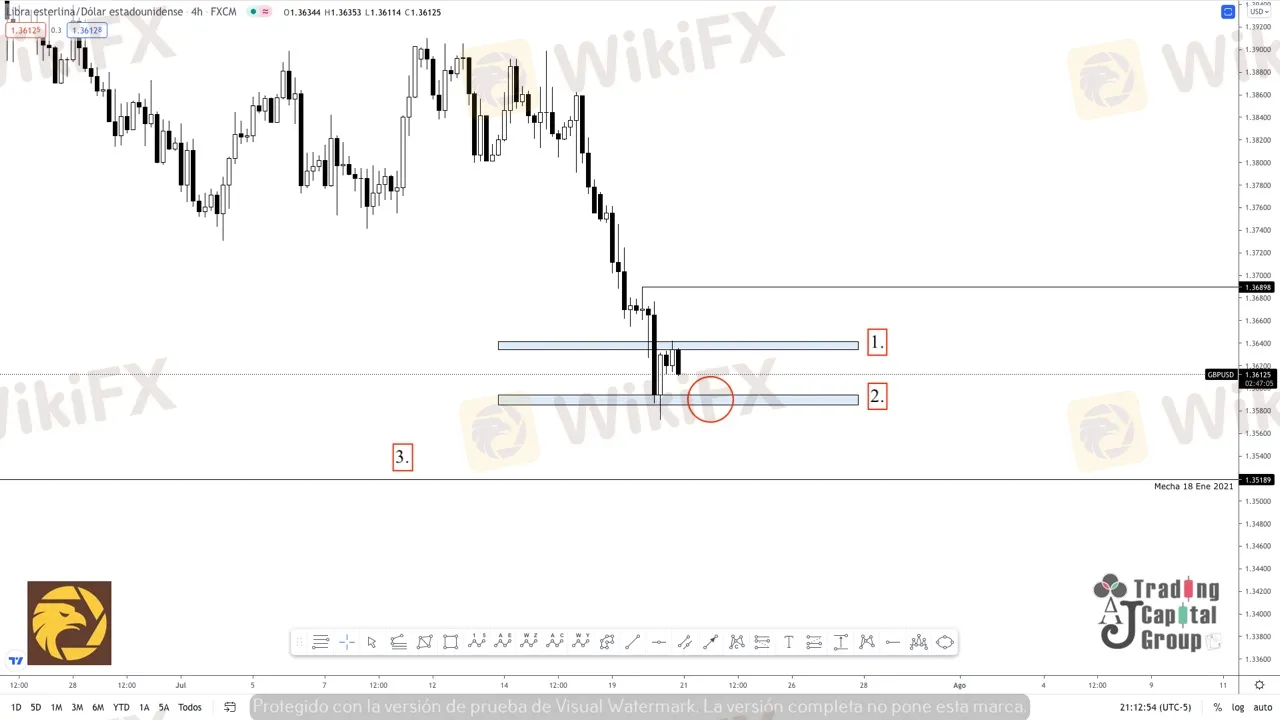 3. De completarse un patrón de venta, este nivel podría establecerse como un nivel de profit interesante, debido a que el trafico de velas es mínimo y la tendencia apoyaría dicho movimiento por lo menos para cubrir la mecha generada el 18 de enero de 2021.