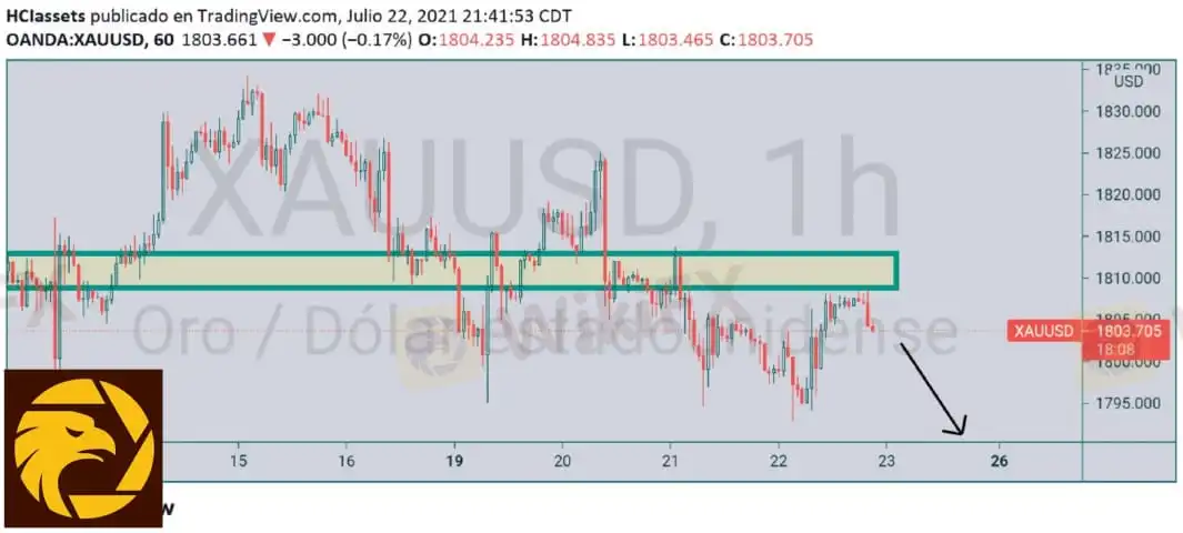 XAUUSD el oro dado de que hablar nuevamente luego de recuperar terrero en la sesión de newyork hasta el nivel de resistencia que no rompe debido a que su tendencia es bajista, así que buscamos ventas a partir del precio 1803.40