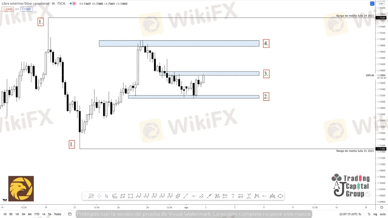 1. Los rangos de mechas establecidas en este gráfico, son determinadas como zonas a las cuales el precio podría llegar en uno que otro momento. Teniendo en cuenta dichas zonas, es posible proveer la dirección a la cual se dirige el siguiente movimiento.