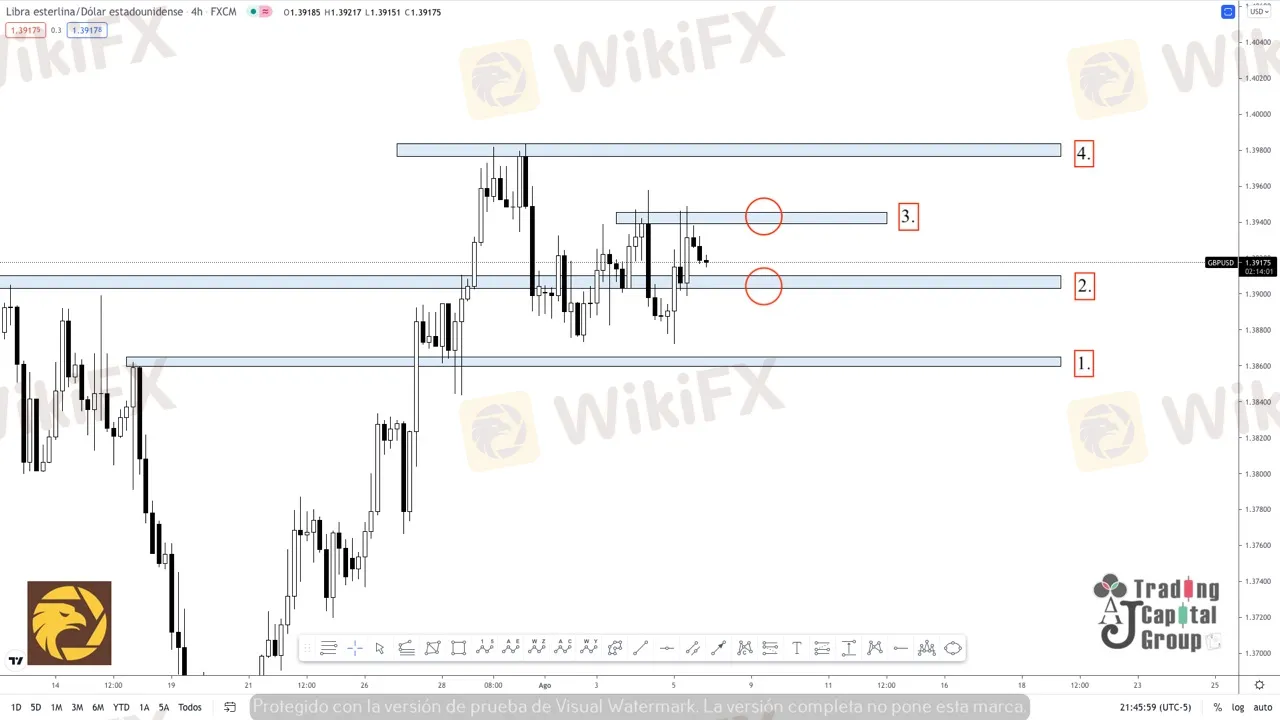 2. Se determina como una zona de entrada en tanto el precio continue el movimiento bajista, siempre y cuando el activo rompa y retestee dicha zona de los 1.37533