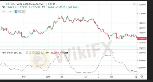 Un ADX por debajo de 25 es indicativo de que el precio de un activo se está moviendo sin tendencia definida.