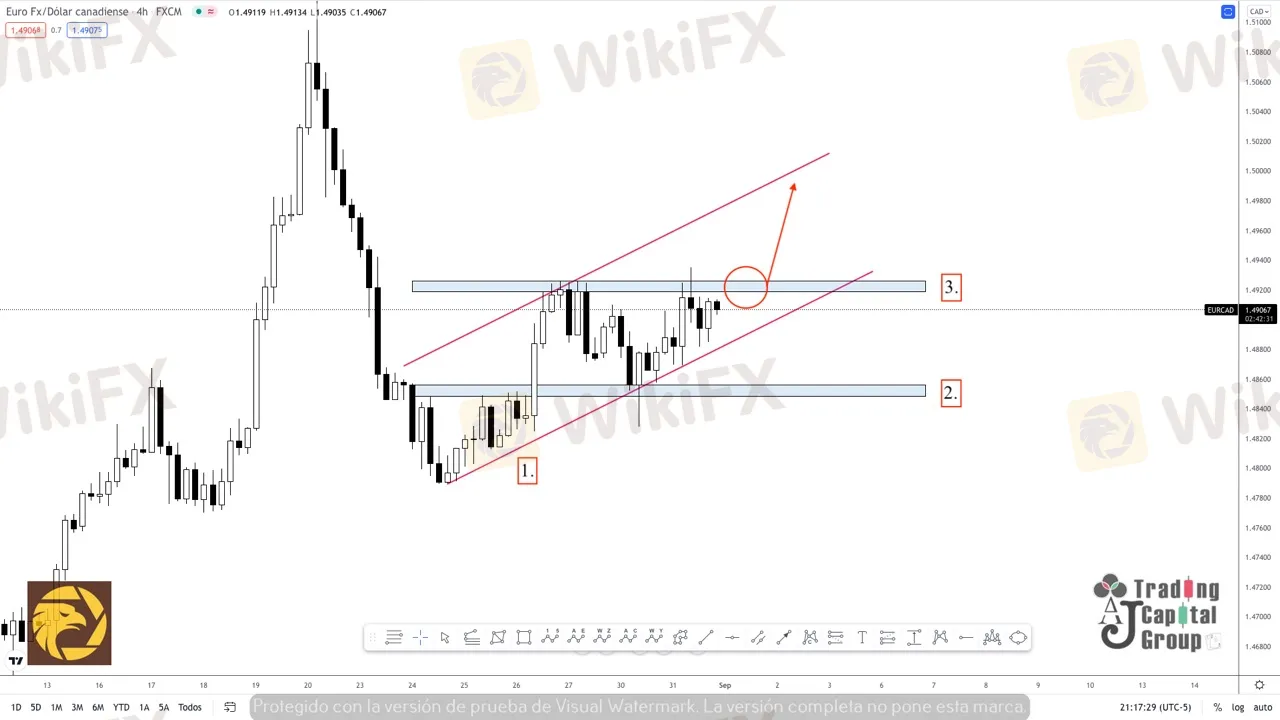 3. Zona inicial del rally alcista. Como zona de demanda, en caso de una pérdida de volumen del precio, este nivel podría consolidarse como un espacio de ganancia, para ventas por debajo de los 1.49300 o de compra por encima del mismo valor.