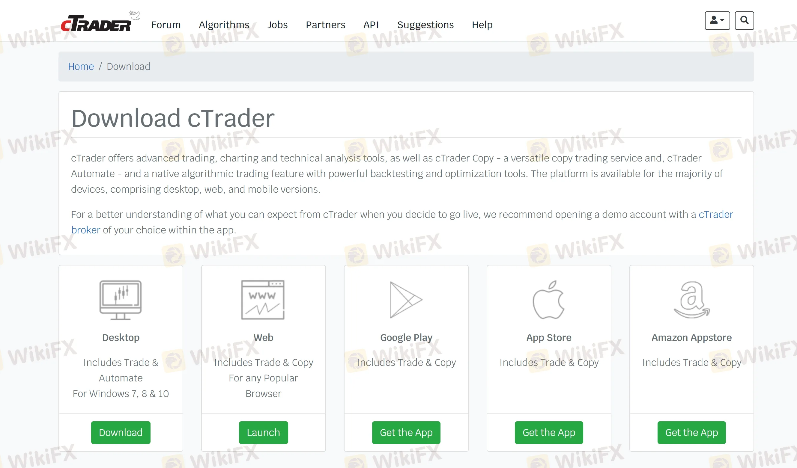 La plataforma cTrader fue creada por Spotware y todavía está en desarrollo. La versión para PC de cTrader está actualmente disponible en forma de aplicación de escritorio (Windows), aplicación web, disponible en cualquier navegador web (Windows, Linux, MAC). Las aplicaciones móviles están disponibles para los sistemas operativos móviles iOS y Android.