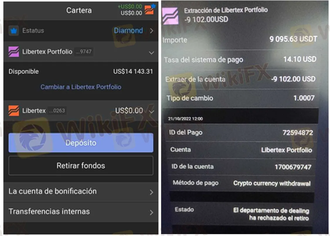 Ana lleva cierto tiempo operando a través de Libertex, y gracias a las ganancias sobre su operación, logro recaudar $14.143 USD. Observando sus ingresos, Ana decide solicitar un retiro de sus fondos, el cual le fue negado por Libertex.