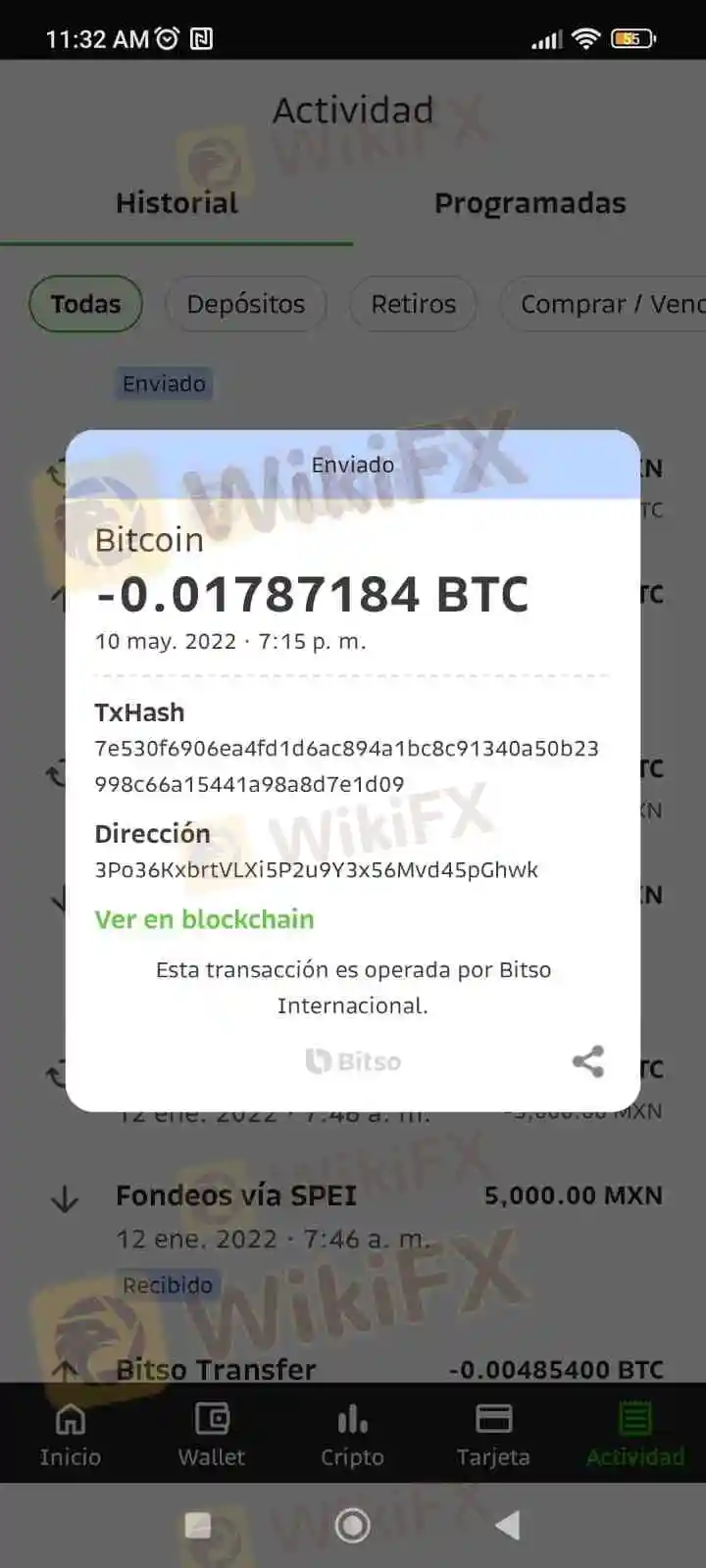 El 10 de mayo de 2022, el cliente realizó una inversión de $500 dólares en OmegaPro a través de Bitso, confiando en la promesa de multiplicación de su dinero. Todo parecía estar en orden al principio, pero después de aproximadamente dos meses, surgieron los primeros indicios de problemas.