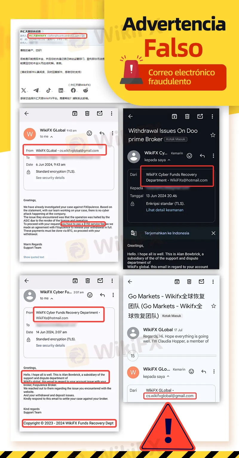 Extracto:Recientemente, WikiFX ha recibido comentarios de usuarios que informan que los estafadores se están haciendo pasar por WikiFX para enviar correos electrónicos fraudulentos a través de servicios de correo electrónico de terceros no autorizados ni administrados por WikiFX (incluidos, entre otros, Gmail, Hotmail, 163 y otras plataformas de correo electrónico públicas).