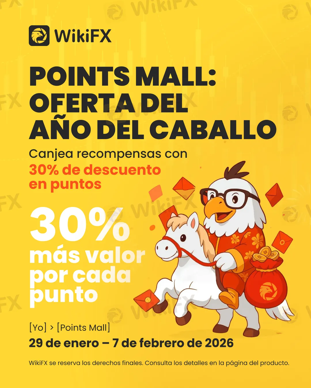 Durante el evento, inicia sesión en tu cuenta, entra al Points Mall, elige cualquier producto que te guste y, al finalizar el canje, el sistema aplicará automáticamente el 30% de descuento en puntos. Simple, directo y lleno de buena fortuna.