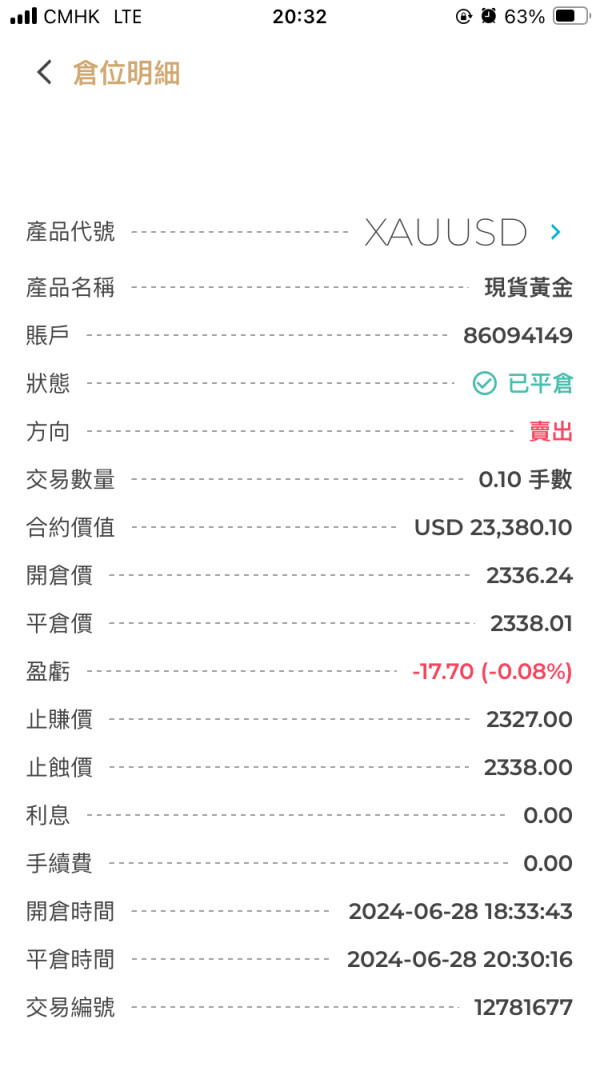 5月28日, 晚上20:30,有一个美国的数据, 我在只损价设置了2338,在出数据后最高点只是2337.24, 但是已经自动平仓。