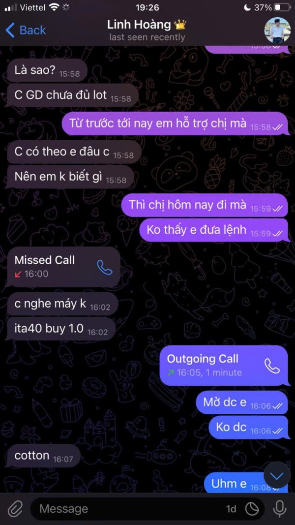 Tôi có mã ID 999370 tại sàn GTMX, theo nhóm sàn của Keily; tham gia được 1 tháng nhưng chỉ giao dịch cổ phiếu . sau 1 tháng tham gia tôi muốn gia hạn thêm bonus nhưng bạn hỗ trợ bảo tôi giao dịch chưa đủ lót . phải đi theo lệnh bạn hỗ trợ mới được gia hạn thêm Bonus. bạn hỗ trợ tôi là Hoàng Linh bên Telegram. ngày 2/10/ 2024. bạn hỗ trợ cho tôi đi lệnh Ita40; buy 1.0; nhưng tôi vào lệnh không được ; bạn đấy tiếp tục bảo tôi đi lệnh COTTON buy 1.0. tôi hỏi cổ phiếu à. bẠn ấy bảo “ Vâng”; bảo tôi mua 1 cổ để đủ lót gia hạn thêm bonus. Tôi vào lệnh bay luôn Tk 8150$. Tôi liên lạc bạn đấy không được, hỏi trưởng nhóm thì không trả lời, phó nhóm thì bảo liên hệ lại với bạn hỗ trợ mà cũng mất tích luôn. liên hệ Hotline, Mail sàn cũng không được.