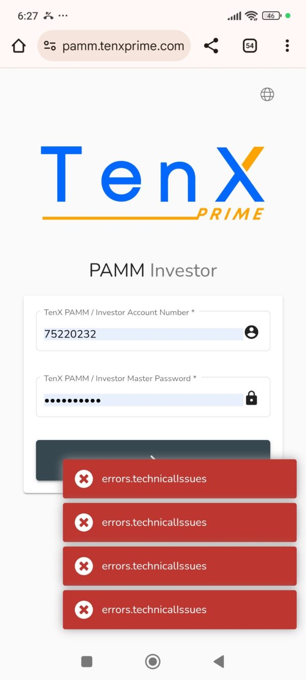 正式投诉:TenX Prime PAMM 投资问题 正式投诉:TenX Prime PAMM 投资问题 本人谨此正式报告并表达我对 TenX Prime 经纪商 PAMM 投资平台 的投资经历的严重关切。 我通过 TenX Prime PAMM 计划,在 Chris Anderson(又名 Chris Gold Father) 和 Paul Gold Hunter 的管理下,投资了 总额 5,400 美元。 不幸的是,目前我 无法提取我的投资资金,且该经纪商的 客服团队 以及 PAMM 资金管理人 Chris Anderson 先生 均已 停止回复我的 Telegram 消息。 Chris Anderson 的 Telegram 联系号码为 +88803975164,但该号码 无法接通电话。 此外,自 2025 年 10 月 2 日起,我一直 无法登录 TenX Prime PAMM 投资者网页: 👉 https:pamm.tenxprime.comappinvestments2045 这一情况令人 极为担忧,我怀疑我的资金可能已被 不当管理、冻结或扣留,且缺乏任何透明度与正式沟通。 我已多次尝试联系资金管理人及 TenX Prime 的客服团队,但至今 未收到任何回复或协助,也未能获得有关提款流程或账户资金状况的任何说明。 我强烈敦促 相关监管机构、投资者及金融监管部门 密切关注此事,并对 TenX Prime 的 PAMM 运营及其相关资金管理人行为 进行调查。 我真诚希望 TenX Prime 公司 及相关责任人能尽快回应,妥善处理此事,并确保我 5,400 美元的投资资金能够安全返还。 Formal Review: TenX Prime PAMM Investment Issue I am writing to formally report and express my deep concern regarding my investment experience with TenX Prime Broker on its PAMM Platform. I invested a total amount of USD 5,400 under the management of Mr. Chris Anderson (also k