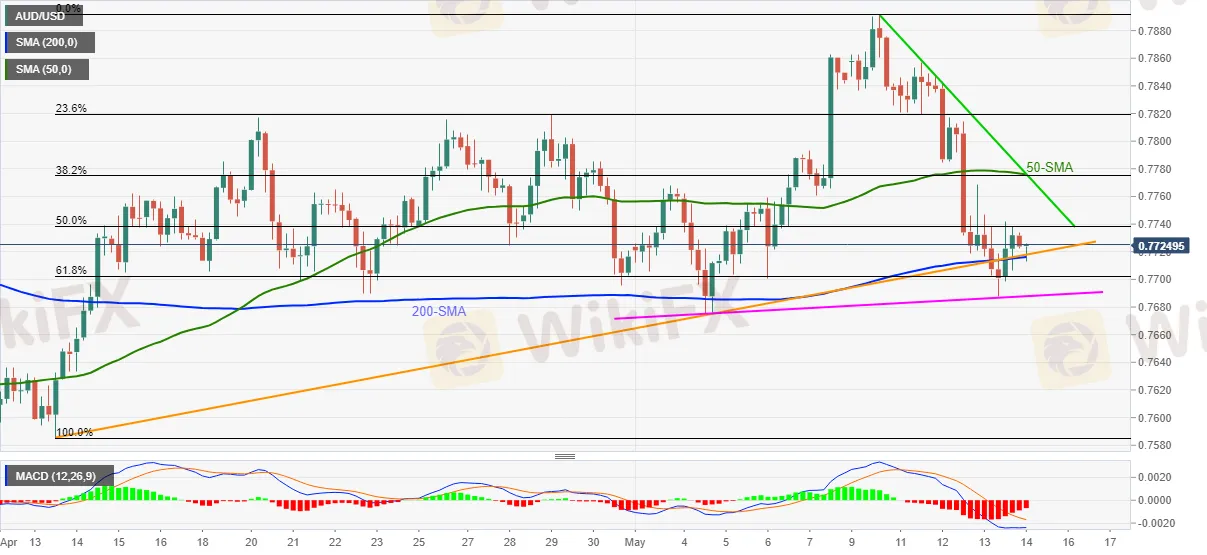 Balita sa Forex ng WikiFX (Ika-14 ng Mayo taong 2021) - Pagtatasa ng Presyo ng AUD/USD : Inatake ng mga nagbebenta ang 0.7720 na confluence ng suporta.
