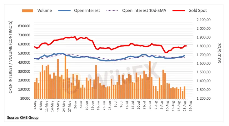 Open interest in gold futures markets extended the uptrend in place since August 12 and rose by early 9K contracts on Monday, according to flash data from CME Group. In the same line, volume went up by around 51.8K contracts, offsetting the previous drop.