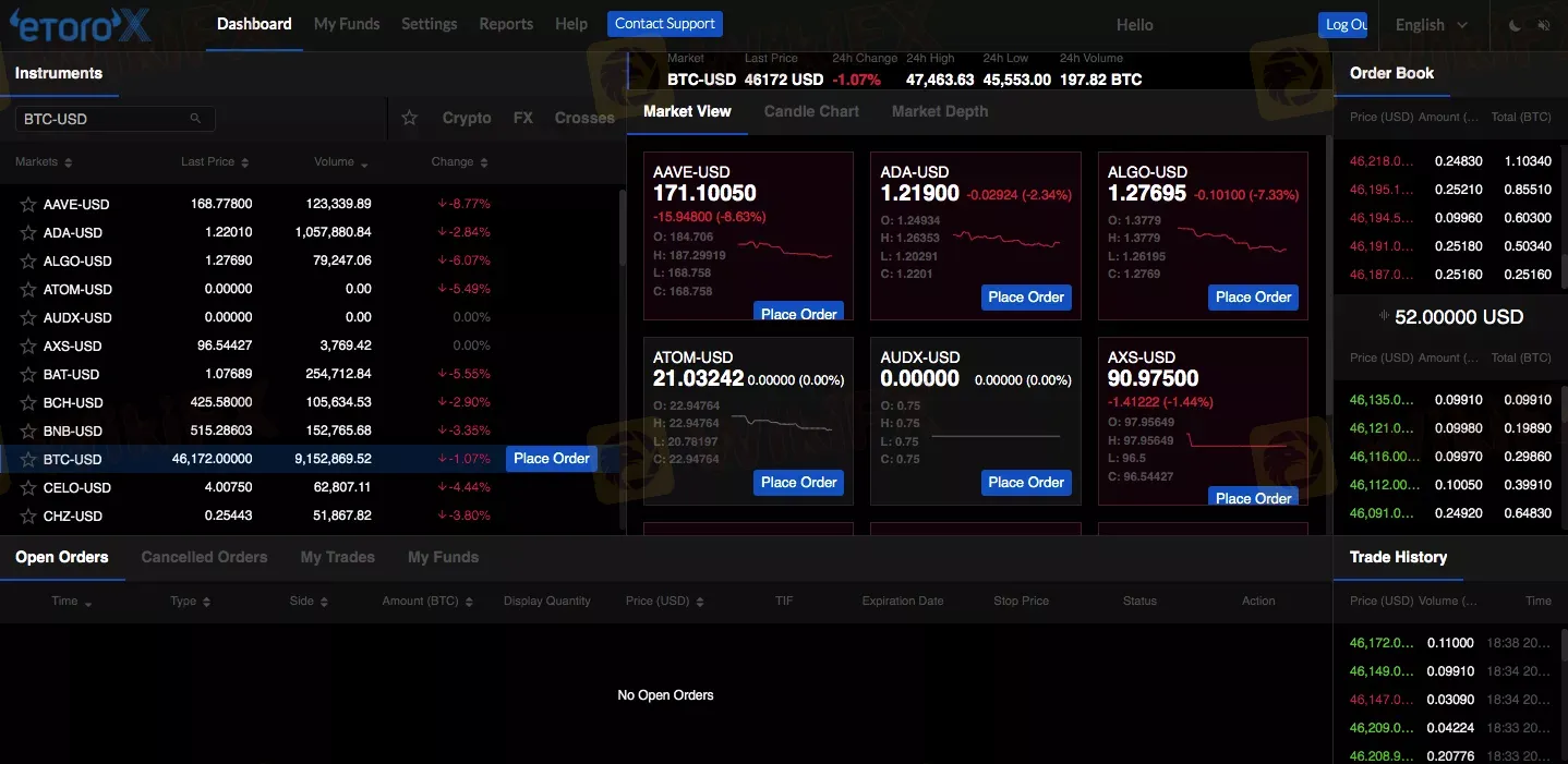 eToroX has all of the features you'd expect from an institutional-grade exchange, such as US dollar deposits, margin trading, trading APIs, and quick execution. These characteristics make it an ideal trading platform for both professional and institutional traders.