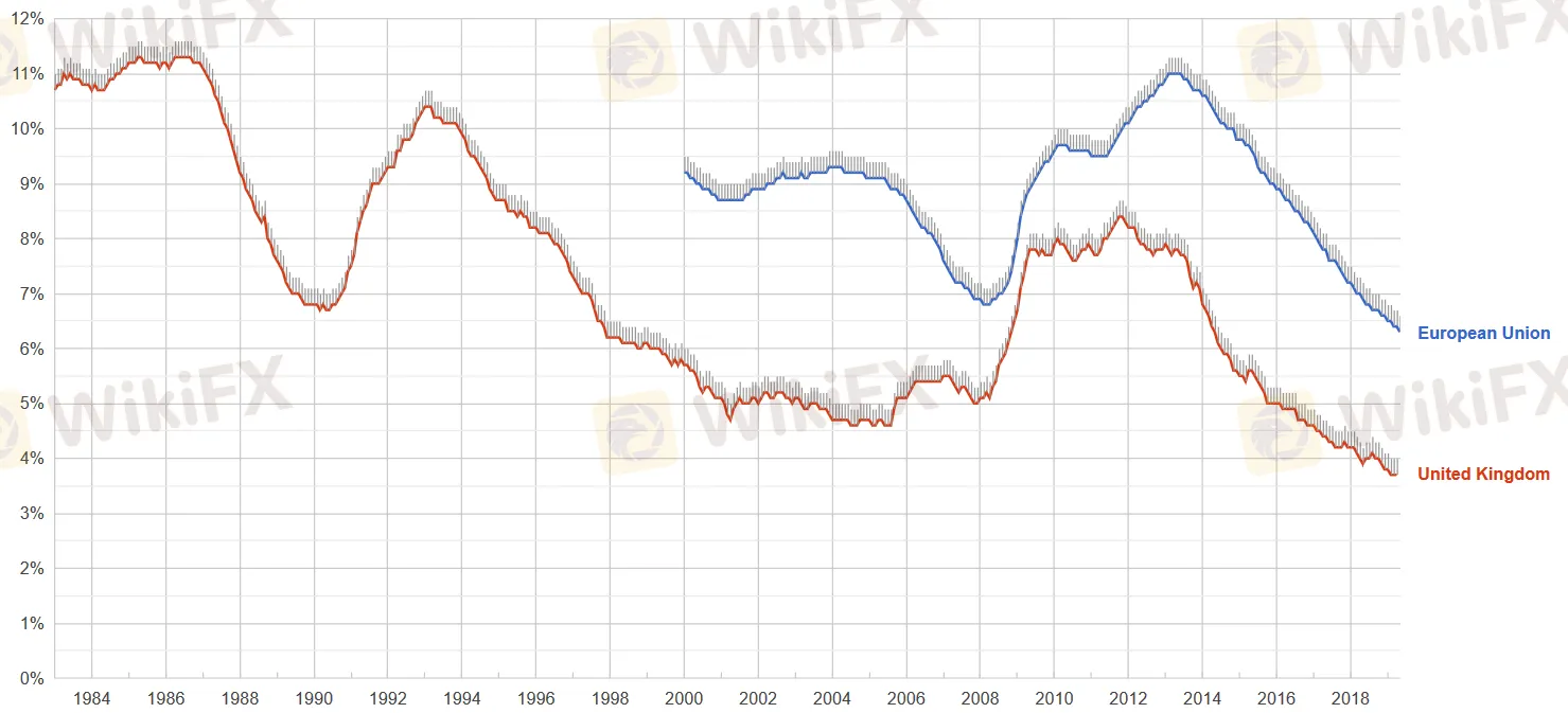 Figure 1 shows the unemployment rates in the United Kingdom and the European Union.