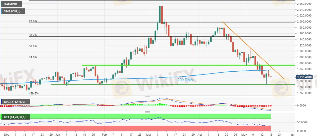 Ang mga presyo ng ginto (XAU/USD) ay umatras mula sa intraday high, na nananatili sa saklaw na malapit sa $1,813-18, habang ang mga pandaigdigang merkado ay nagpupumilit para sa malinaw na direksyon upang palawigin ang dating optimismo. Sa paggawa nito, pinapanatili ng mahalagang metal ang pag-pullback ng nakaraang araw mula sa 200-DMA sa panahon ng walang kinang na Asian session noong Miyerkules.