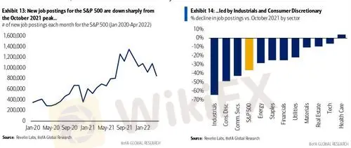Kakulangan ng manggagawa. Ang tsart ng Goldman ay nagpapakita na kapag ang labor market ay masikip, ang paglago ng trabaho ay bumabagal sa tagsibol, lalo na sa Mayo. Sinasalamin nito ang mas kaunting available na manggagawa at ang mataas na seasonal na hadlang; Ang mga salik sa pagsasaayos ng BLS ay ipinapalagay na higit sa 0.5mn net seasonal hiring sa Mayo. Noong Hunyo at Hulyo, pinapagaan ng summer youth labor force ang mga hadlang na ito, na naaayon sa peak drag sa paglago ng trabaho noong Mayo. Bumagal ang paglago ng payroll sa +75k noong Mayo mula sa +263k noong Abril.