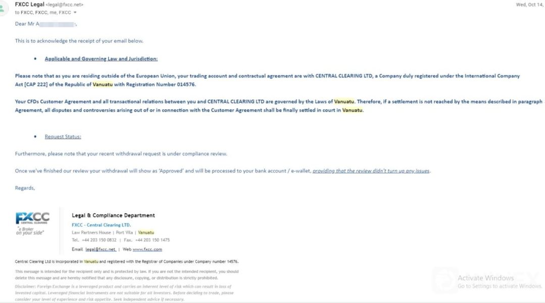 This broker is holding my withdrawal request for ridiculous reasons! At first they flagged my document aren't the same address. I emailed them but they barely respond to my report. I tried to fulfill all the things they requested to me in order to verify my authenticity. But now they sent me an email saying that my request is under compliance review. What is this nonsense? They don't want to pay my withdrawal!