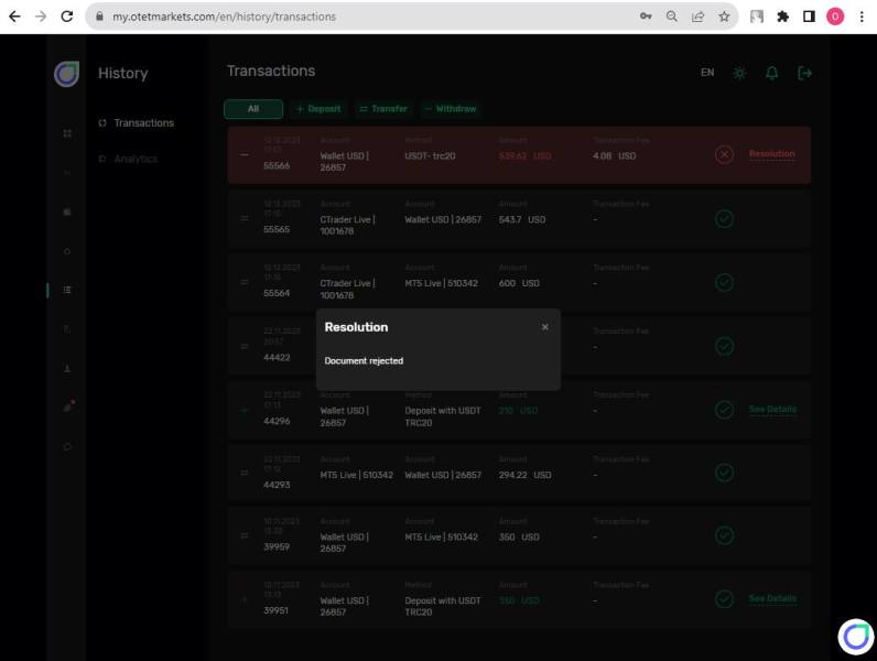 I opened an account about a month ago. My pnl went from 500 to 400 then to 800, then 600, then took off and I reached 1K. I made maybe 20 traded on DAX and 15 on gold a day on avarage, and was holding position between 2 min and 8 hours. On average I was holding a position for maybe 30min. So relatively short, but I don't think it would violate any rules.That was the point when I decided to withdraw half of it, but then I got this message 1EBnyj5oGkbc"RE: Trading Account Violation Inquiry,We hope this letter finds you well. It has come to our attention thatcertain trading activities in your account 510342 number with OtetMarkets Forex Brokerage have raised concerns regarding possible ruleviolations. We take regulatory compliance seriously to ensure fair andsecure trading for all our clients.We kindly request that you provide us with relevant documents related toyour trading methods and tools employed. This information will aid us inconducting a thorough investigation to ensure compliance with ourtrading policies and industry regulations.Thank you for your immediate attention to this matter.I don't document my strategy so I don't even understand, but this is a red flag for me. Luckily I have deposited only 500 USD, but I would not dare to transfer larger amount like 5-10K to a broker like this.They are not even willing to release my initial capital, so be careful with this broker.I hope it is not over yet.