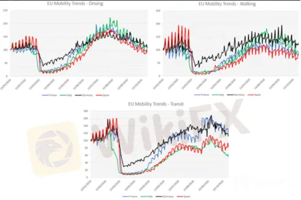 En outre, selon plusieurs données économiques publiées dans les jours récents, les restrictions pandémiques ont déjà eu des effets négatifs sur l‘économie. En octobre, l’indice des directeurs d‘achat de la Zone Euro s’élève à 46,2, inférieur à la valeur estimé soit 47,0. Ainsi, les 3 indicateurs majeurs de transports en Europe, comme la marche à pied, le transport en voiture, les transports communs, ont commencé leurs baisses constantes.