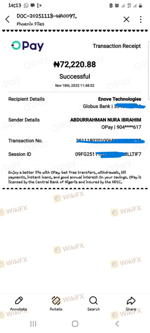मैंने जमा किया, लेकिन मुझे अपने ब्रोकर खाते में USD नहीं दिखाई दे रहा है। मैंने इस खाते से पैसे भेजे हैं - खाता नाम: अब्दुर्रहमान नूरा इब्राहिम, बैंक का नाम: ओपे बैंक, से खाता नाम: एवोन टेक्नोलॉजीज, बैंक का नाम: ग्लोबस बैंक। मेरे पैसे न तो मेरे खाते में वापस आए हैं, और न ही ब्रोकर खाते में पहुंचे हैं । मैं 26 घंटे से इंतजार कर रहा हूं, लेकिन अभी तक उन्होंने वापस नहीं किया है।