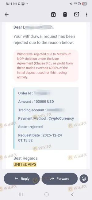 Unitedpips103 हज़ार डॉलर निकालने में असमर्थ