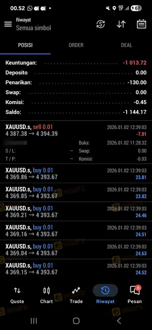 हालांकि मैंने, एक ग्राहक के रूप में, कोई लेन-देन/पोजीशन नहीं खोली। इसके परिणामस्वरूप मेरा खाता मार्जिन हो गया। फाइनेक्स ने 4387 पर एक बिक्री पोजीशन खोली और इसका परिणाम 4394 पर मार्जिन कॉल हुआ। नीचे, मैंने मार्जिन कॉल को रोकने के लिए 7 बिक्री और 7 खरीद पोजीशन की, इसलिए मैं उतार-चढ़ाव में फंस गया। इसके कारण मुझे 2 जनवरी को 手/手数 का सबूत खोना पड़ा, जैसा कि नीचे दिखाया गया है।