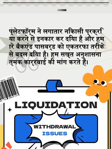 एक्सपोज़र प्लेटफॉर्म ने लगातार निकासी प्रक्रिया करने से इनकार कर दिया है और हमारे बैकएंड पासवर्ड को एकतरफा तरीके से बदल दिया है। हम सख्त अनुशासनात्मक कार्रवाई की मांग करते हैं।