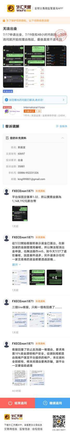 不給大額出金(本金佔了86%),還謊稱新加坡金融管理局為了防止洗錢要求再入金帳戶總額10%當作保證金,不然扣留資金調查,根本詐騙