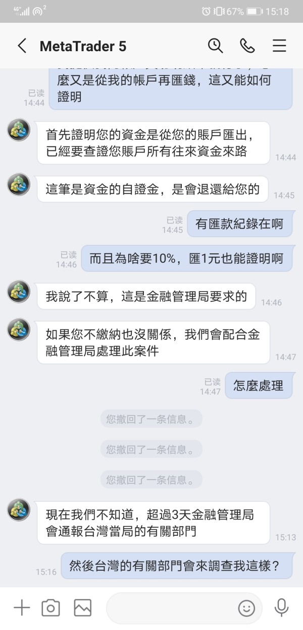 不給出金,還謊稱新加坡金融管理局為了防止洗錢要求再入金帳戶總額10%當作保證金,不然扣留資金調查,根本詐騙