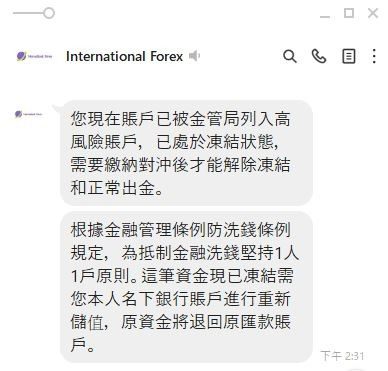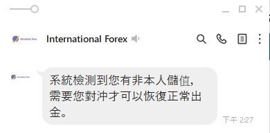 International Forex辦理出金時客戶服說帳戶內有非本人儲值無法出金,並把我的帳戶凍結