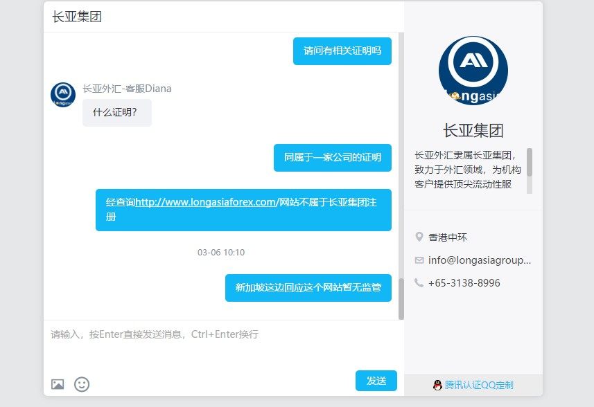 经查询长亚监管网站和使用网站不一致 受监管的网站http://www.longasia.com 长亚现在用的网站http://www.longasiaforex.com 经查询http://www.longasiaforex.com/网站不属于长亚集团注册