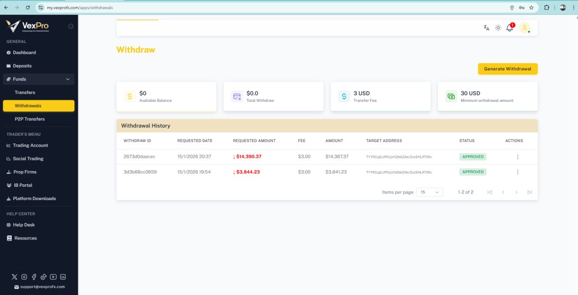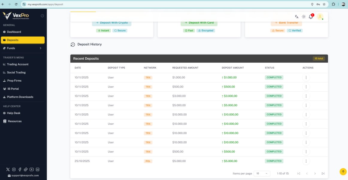 Entré a VEXPRO con la típica desconfianza que ya traigo de otros brokers. He tenido experiencias donde todo va bien… hasta que intentas retirar. Por eso empecé poco a poco, haciendo depósitos graduales y probando el sistema antes de meter más capital. Los depósitos siempre se reflejaron bien, sin retrasos ni confusión. Después de operar un tiempo, decidí probar retiros para ver qué tan real era todo. A la fecha he realizado retiros acumulados por alrededor de 17k USD, en dos movimientos, y todos han llegado sin problema. 1 de 14k y otro de 3k. No me cambiaron reglas, no me pidieron cosas raras a última hora ni me hicieron esperar semanas. El proceso fue claro y el dinero llegó, que al final es lo único que importa.