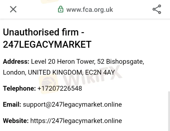 एफसीए ने विदेशी मुद्रा व्यापार के माध्यम से मुनाफा कमाने वालों को आगाह किया है। 10 जनवरी को एफसीए ने 247LEGACYMARKET के खिलाफ चेतावनी जारी करते हुए कहा कि यह एक अनाधिकृत ब्रोकर है। इस ब्रोकर के साथ व्यापार करना असुरक्षित है। इस जालसाज ब्रोकर को हाल ही में ब्रिटिश नियामक संस्था एफसीए ने धर दबोचा है तथा इस ब्रोकर को ब्लैकलिस्टेड ब्रोकर्स की श्रेणी में शामिल कर दिया है। एफसी ने दावा किया कि यह ब्रोकर अनाधिकृत है एवं अवैध तरीके से लोगों को वित्तीय सेवाएं प्रदान कर रहा है।
