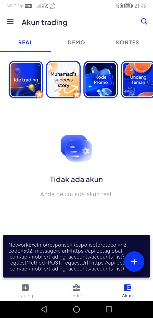 saya tidak dapat login ke dashboard Octafx dan mt5