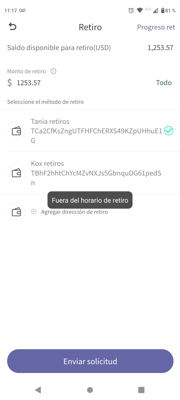 No me permite hacer el retiro de mi dinero a ninguna hora del día.