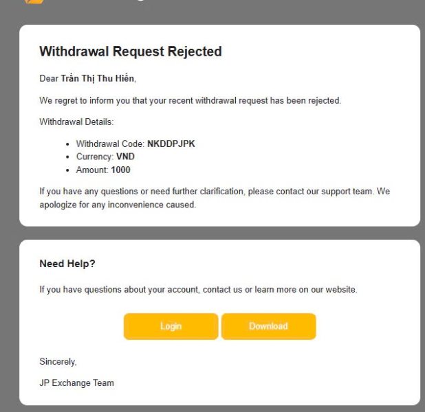 Pertukaran ini tidak mengizinkan penarikan dan menunjukkan tanda-tanda penipuan.