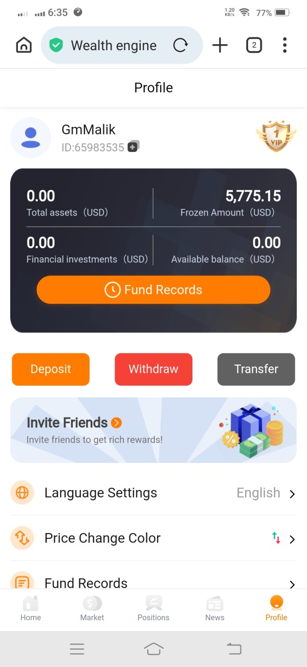 5775 USD captured by wealth engine and not releasing the amount.
