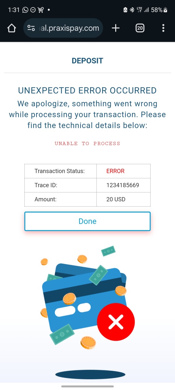 it's almost impossible to make a deposit on this broker. I've been trying for a week now and keep getting the same error messages everytime