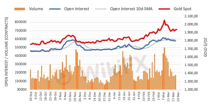 Kenaikan harga emas hari Senin berada di tengah penurunan kecil dalam open interest dan kelanjutan tren naik dalam volume. Terhadap hal ini, logam mulia tetap siap untuk konsolidasi lebih lanjut dalam waktu dekat setidaknya, dengan penghalang naik langsung di sekitar $1950 per troy ons.