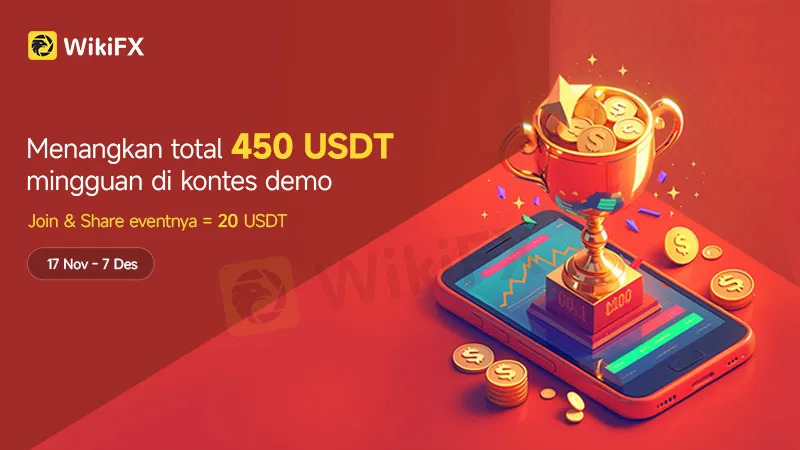 Bagi Anda yang ingin mengasah kemampuan trading tanpa risiko, kini saatnya untuk bergabung dalam kontes demo trading mingguan dari WikiFX yang menawarkan hadiah total sebesar 450 USDT setiap minggunya! Kontes ini dirancang untuk memberikan kesempatan kepada para trader pemula maupun profesional untuk bersaing dalam lingkungan yang aman dan bebas risiko. Tidak hanya itu, dengan membagikan kontes ini di media sosial dan grup forex, Anda juga berkesempatan memenangkan hadiah tambahan.