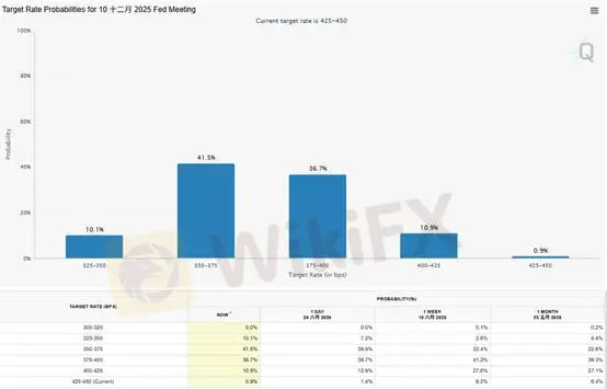 - (Gambar: Probabilitas pemangkasan suku bunga 3 kali oleh The Fed naik dari 39,9% menjadi 41,5%; Sumber: Fed Watch Tool)