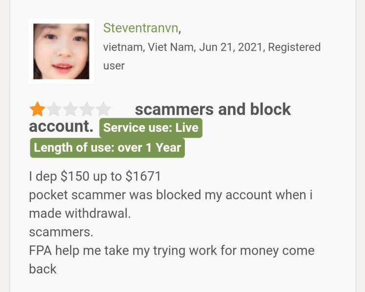 A client had her account blocked when she tried to withdraw after making profit. She calls this broker a scam.