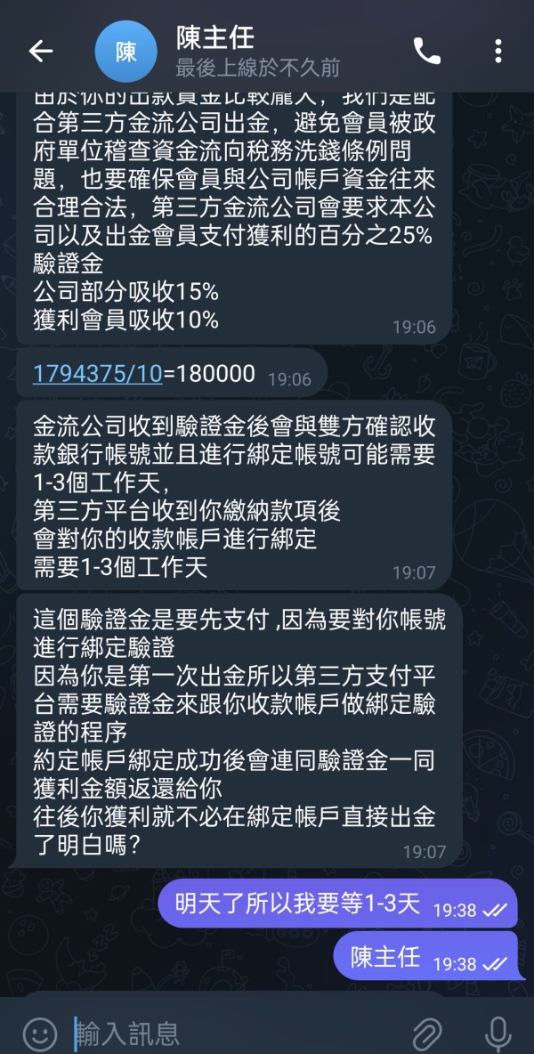 跟注賽事贏錢還不讓出金還要求繳驗証金,繳到一半才發現被詐騙了😭 繳了139955元了希望能拿回來...