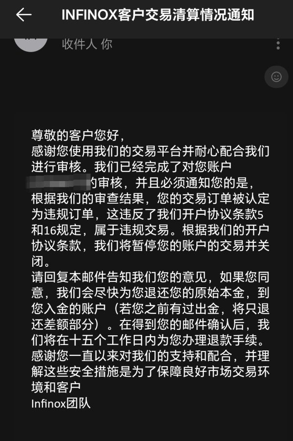 做了蛮久了,我还拉了很多客户过来做,一直都是正常交易,之前亏钱的时候没事,现在刚开始挣了一点钱就封账户,说违规交易,账户里还有6350美金,只给出600,我已经转给客户的佣金也全部从我个人账户扣掉,找客服回复的永远就只有那一条邮件,现在已经拖了一个多月了不给出金