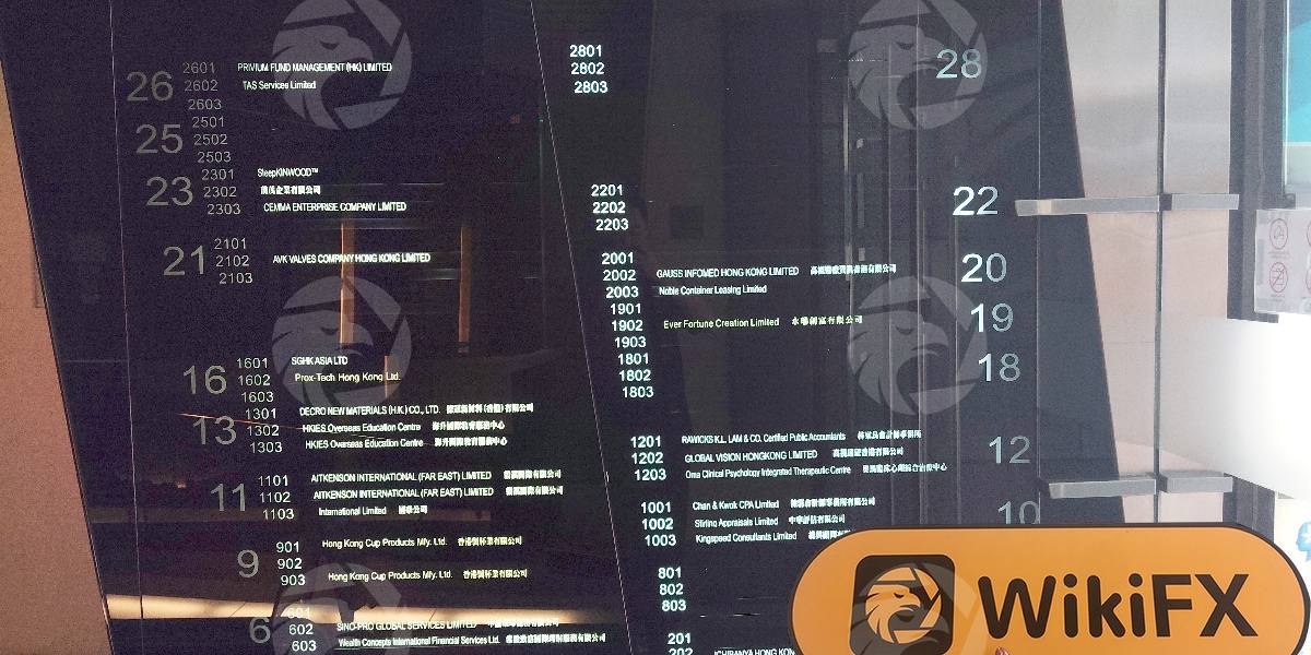 L'investigatore sul posto ha visitato l'indirizzo commerciale pubblicamente esposto del broker forex a Hong Kong, Cina, come previsto, ma non ha potuto trovare informazioni come il nome della società del broker, indicando che il broker non dispone di locali commerciali autentici. Si consiglia agli investitori di effettuare la propria scelta dopo una considerazione completa.