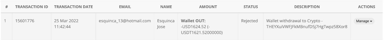 My withdrawal was rejected and the corresponding ammount is not being reflected back in my trading account. It has been morr than 2 weeks now.